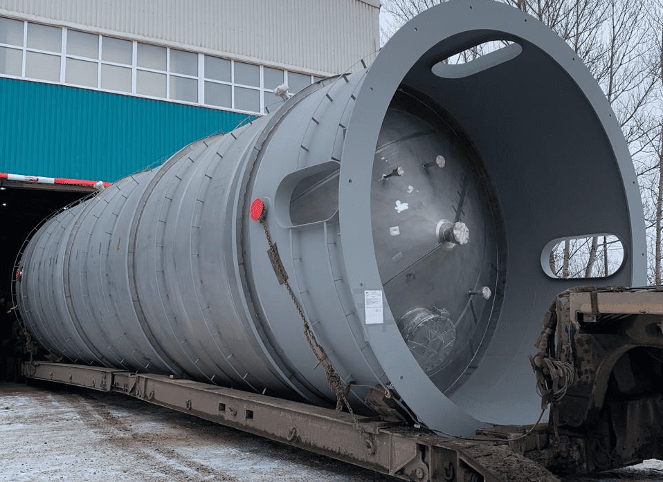 В начале весны 2025 года для одной из ведущих химических компаний России были разработаны, изготовлены и поставлены 4 вертикальных цельносварных емкости объемом 200 м³. Эти емкости выполнены с коническими днищами, оснащены теплообменными устройствами и одинарными змеевиками охлаждения. Основной материал емкостей — нержавеющая сталь AISI 304, обеспечивающая высокую коррозионную стойкость и долговечность даже в агрессивных химических средах. Это делает оборудование надежным и безопасным для хранения и обработки различных химических веществ.